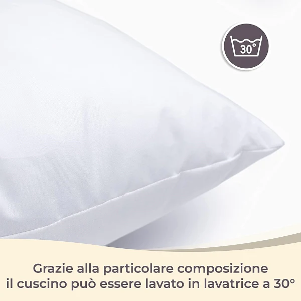 - â™» COMPOSIZIONE – Per i nostri cuscini utilizziamo solo imbottitura in fibra di gel di poliestere siliconata per una morbidezza ed un comfort senza pari! La federa NON removibile è altamente traspirante e realizzata in tessuto 100% puro cotone secondo lo standard 100 di OEKO-TEX, quindi priva di elementi nocivi o chimici per il massimo rispetto della vostra pelle. La particolare composizione rende questi cuscini antibatterici, anallergici e antiacaro